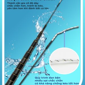 – Ngọn cần chắc chắn, quy trình đan bện nhiều sợi tăng khả năng chịu tải đem lại cảm giác tốt hơn.
